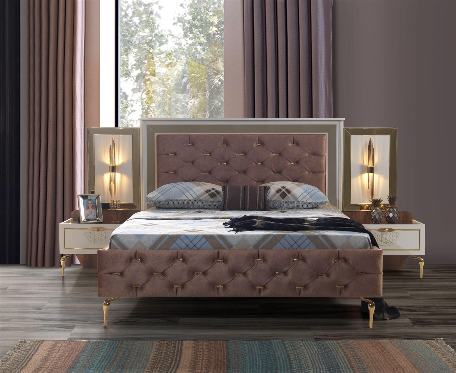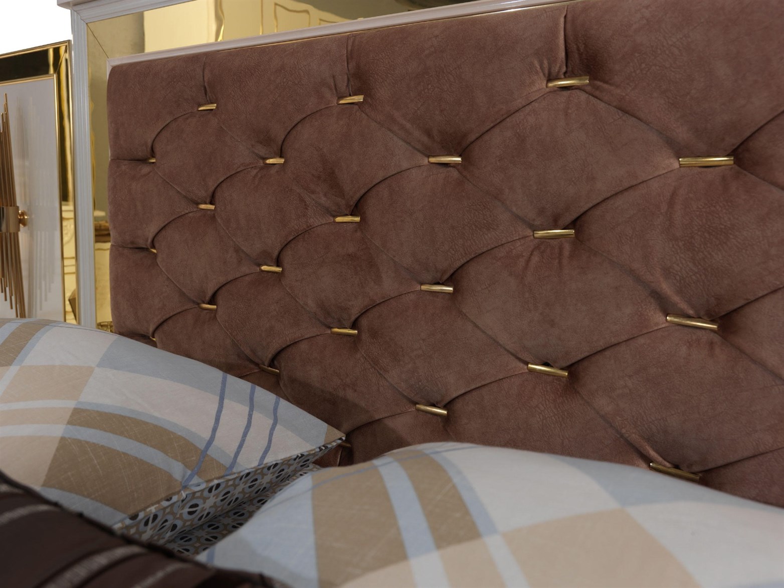 ÜRÜNÜMÜZ 1. KALİTE AYTAŞI, UD RENK SUNTALAM VE ÖN YÜZLERDE LAZER KESİM MDF ÜZERİ PARLAK BOYA OLARAK ÜRETİLMİŞTİR. ÖN YÜZEYLERDE CNC LAZER, GOLD ÇITA VE GOLD SİBU ÇALIŞILIP, METAL GOLD AYAK UYGULANMIŞTIR. ÇEKMECELERİNDE ÖZEL YAVAŞLATICILI TELESKOPİK RAY UYGULANMIŞ OLUP DOLAP İÇERİSİNDE ÇEKMECE, ZİYNETLİK VE PANTOLONLUK BULUNMAKTADIR. KOMİDİN SIRTLARINDA GOLD SÜS VE DOKUNMATİK GOLD LAMBA UYGULANMIŞTIR. ÖN YÜZEYLERDE DEKORATİF BRONZ AYNA VE GOLD RENK KULP KULLANILARAK ŞIK BİR TASARIM SİZLERE SUNULMUŞTUR.