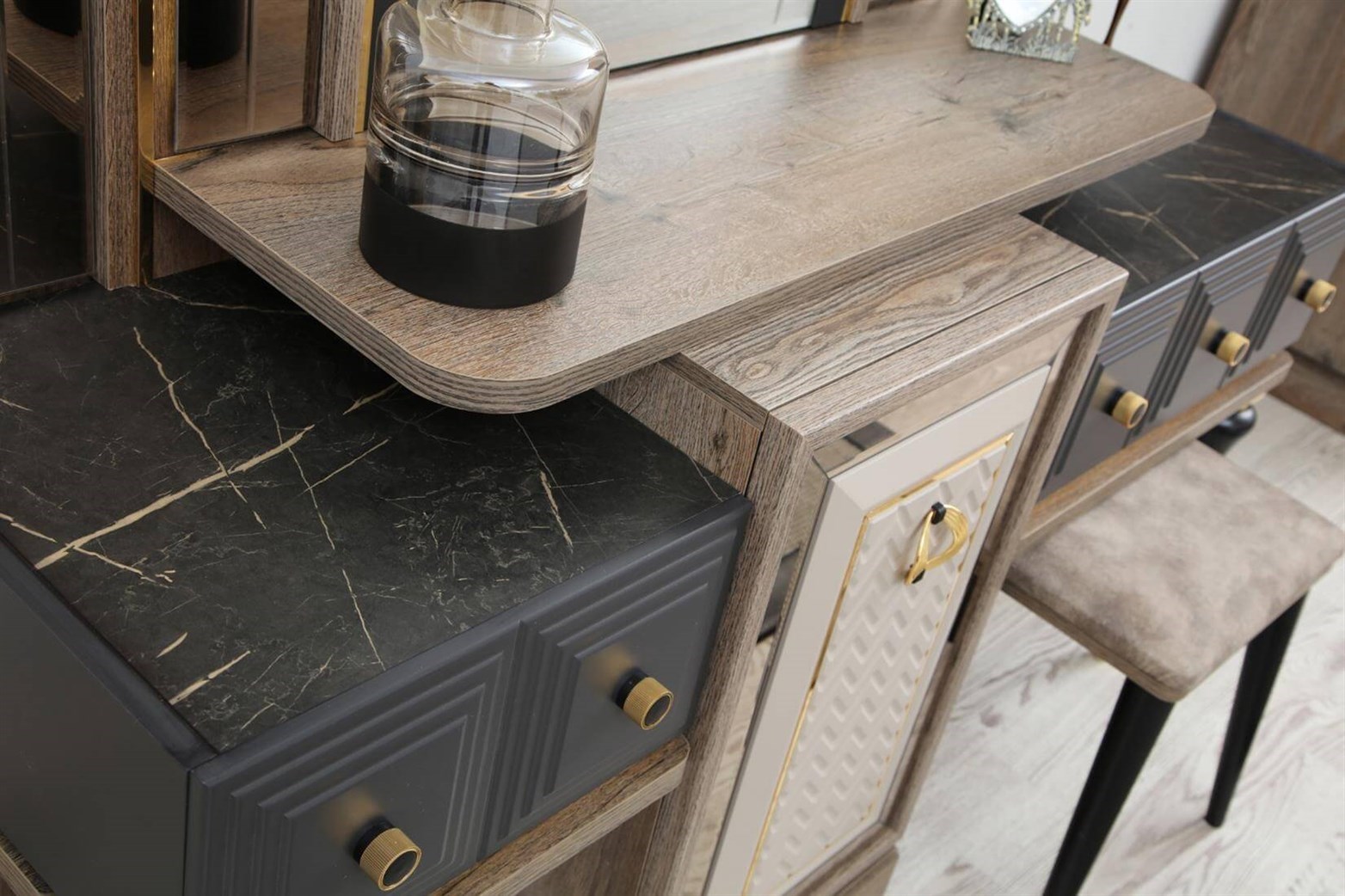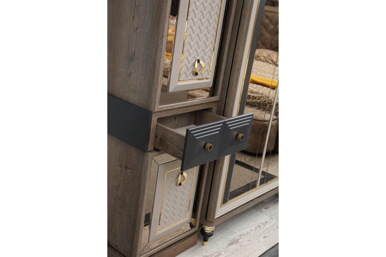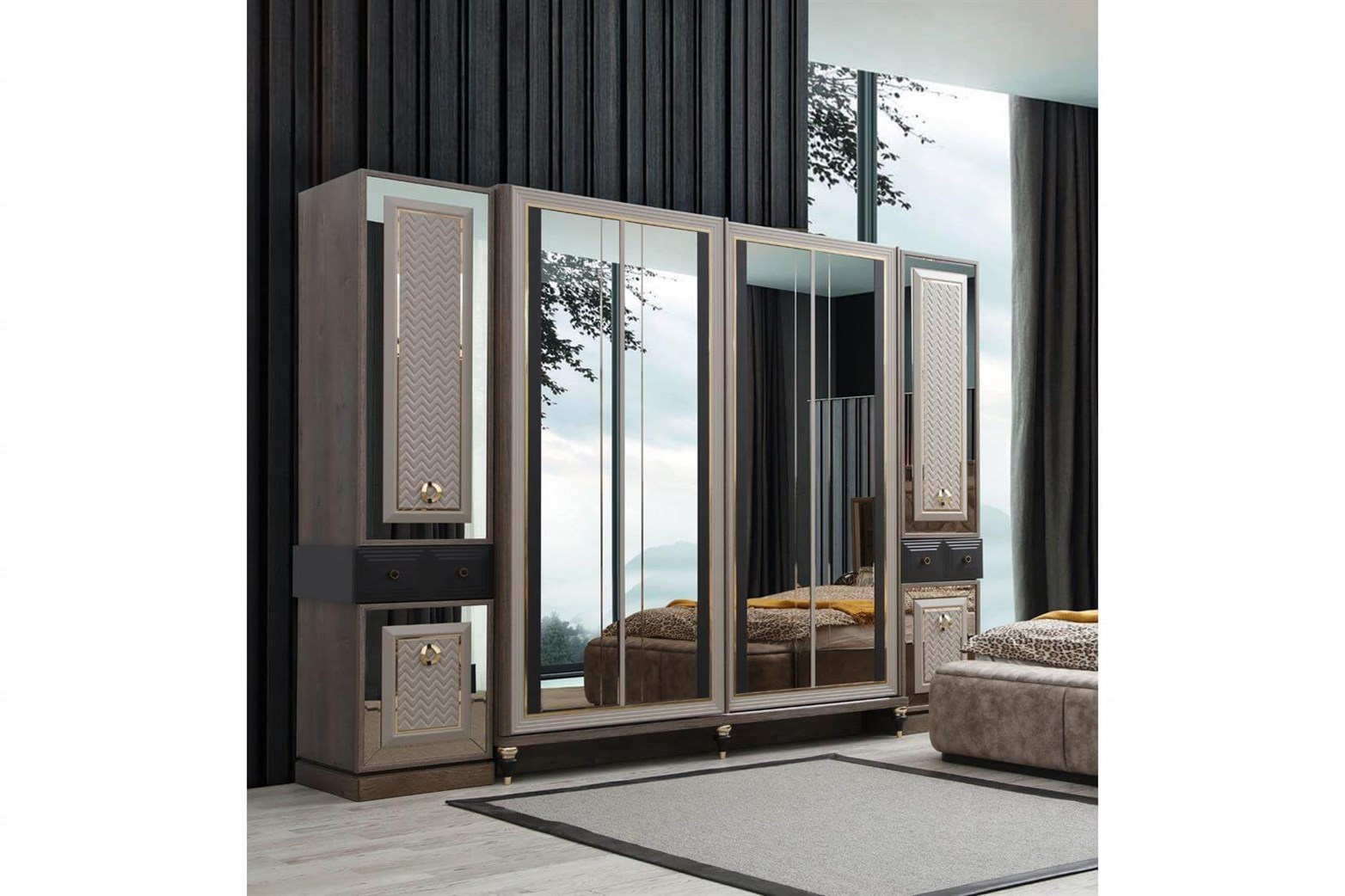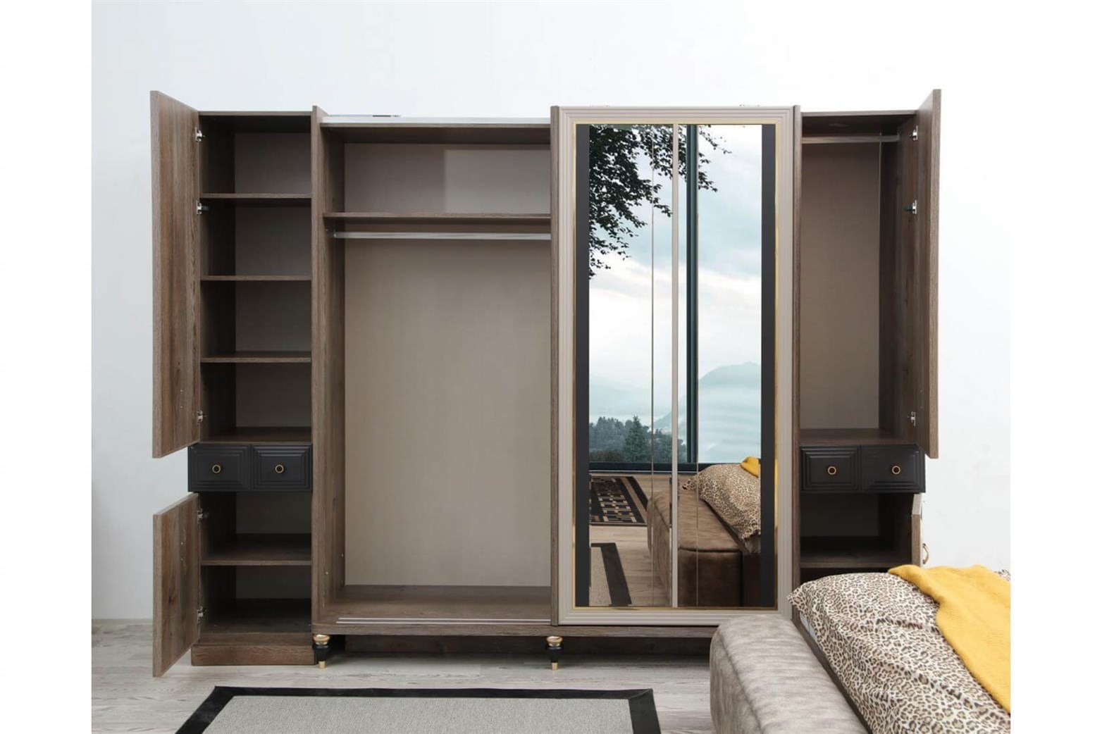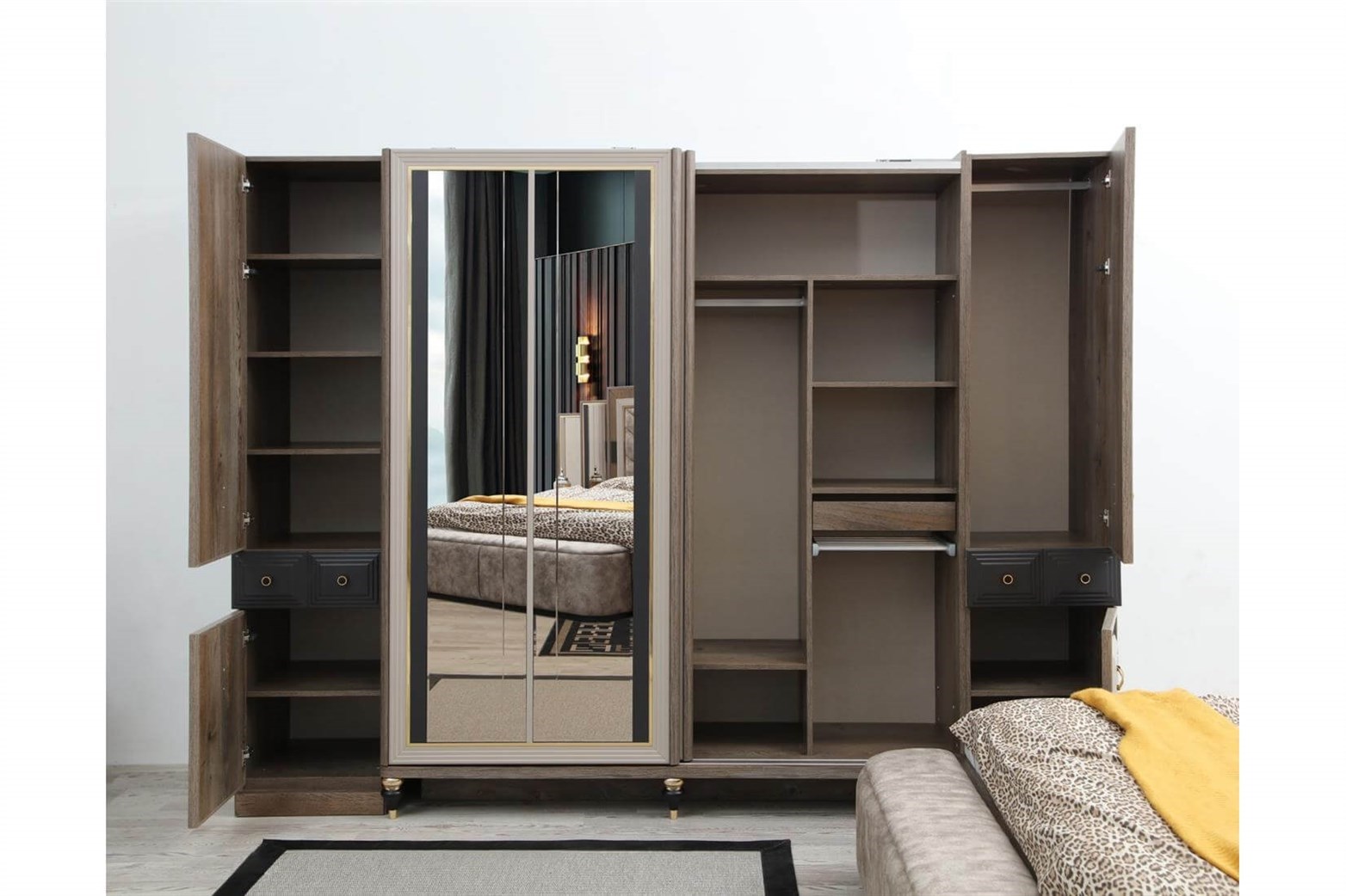 Takım İçeriği 1 Adet Gardırop + 1 Adet Karyola (Bazalı) + 1 Adet Şifonyer + 2 Adet Komodin.