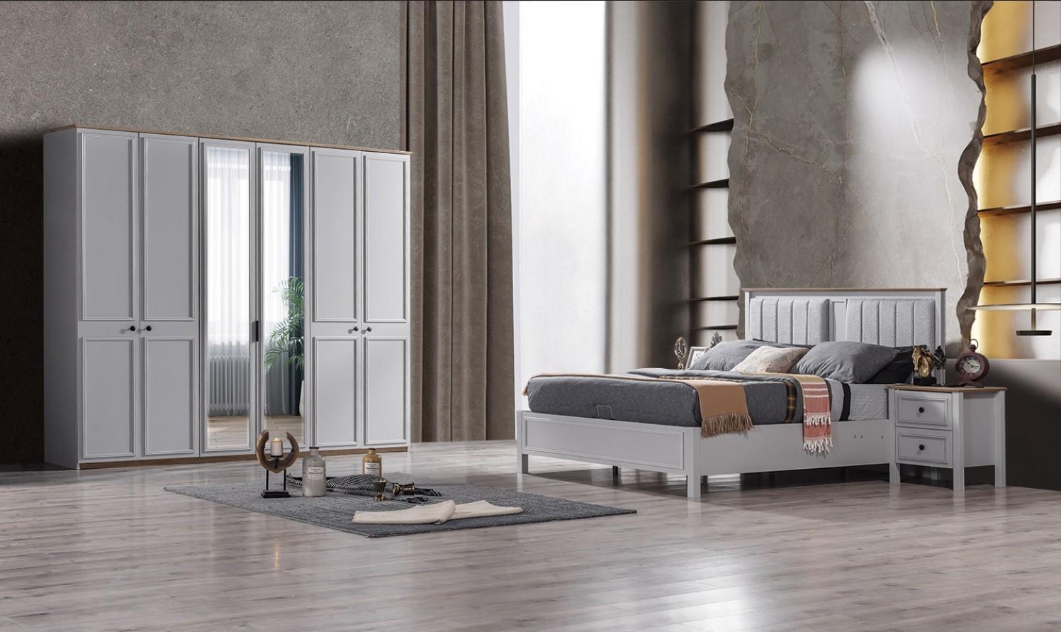 Takım İçeriği  1 adet bazasız karyola + 2 adet komodin + 1 adet şifonyer + 1 adet 6 kapılı dolap
