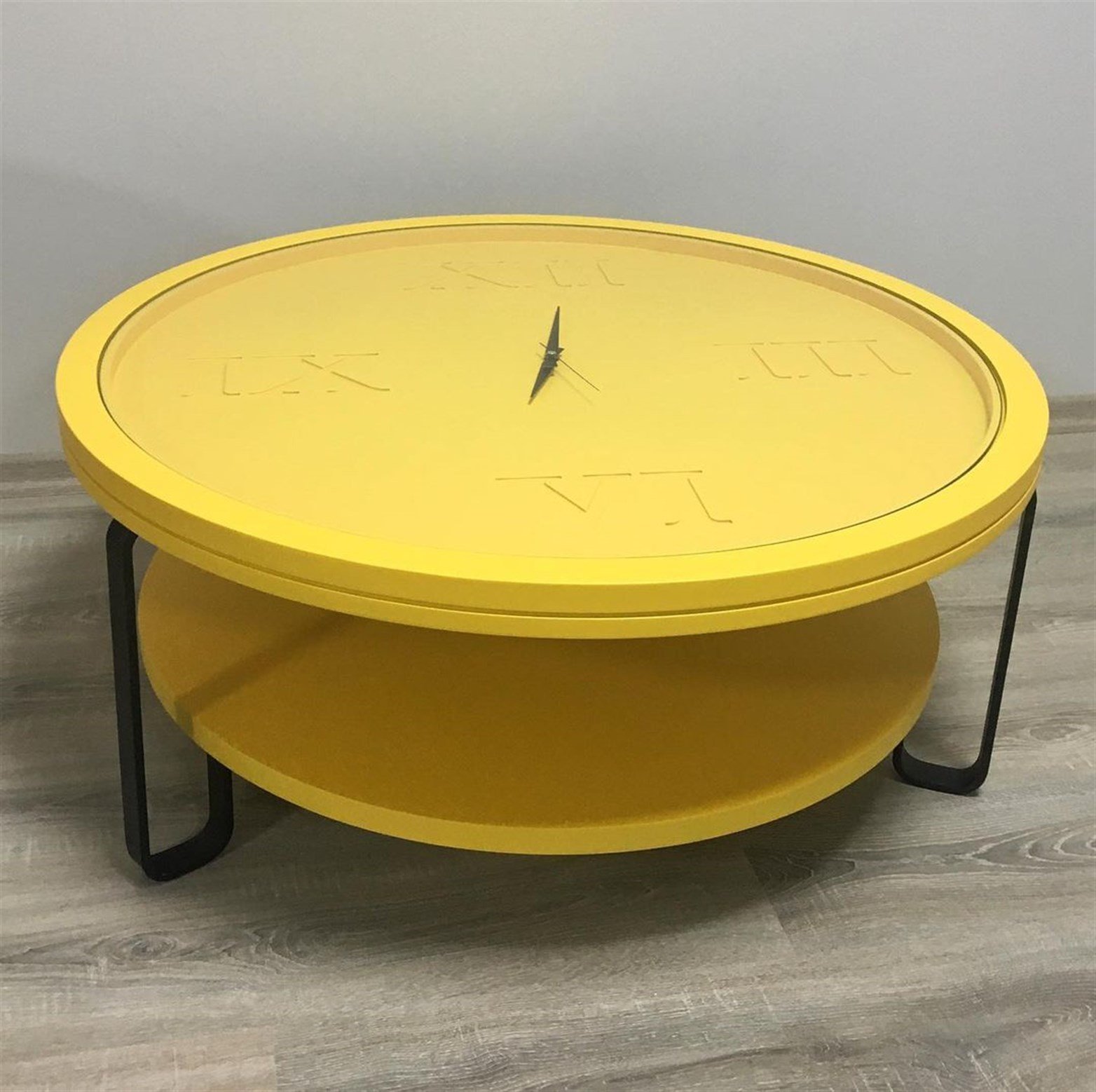 Ceviz kaplama Sarı Boyalı Medefe Ayaklar metal fırın boya siyah Saat pille çalışır Üst yüzeyi camdır Temin süresi: en geç 15 gün (elimizde varsa sipariş olduğunda hemen gönderimini yapabiliriz)