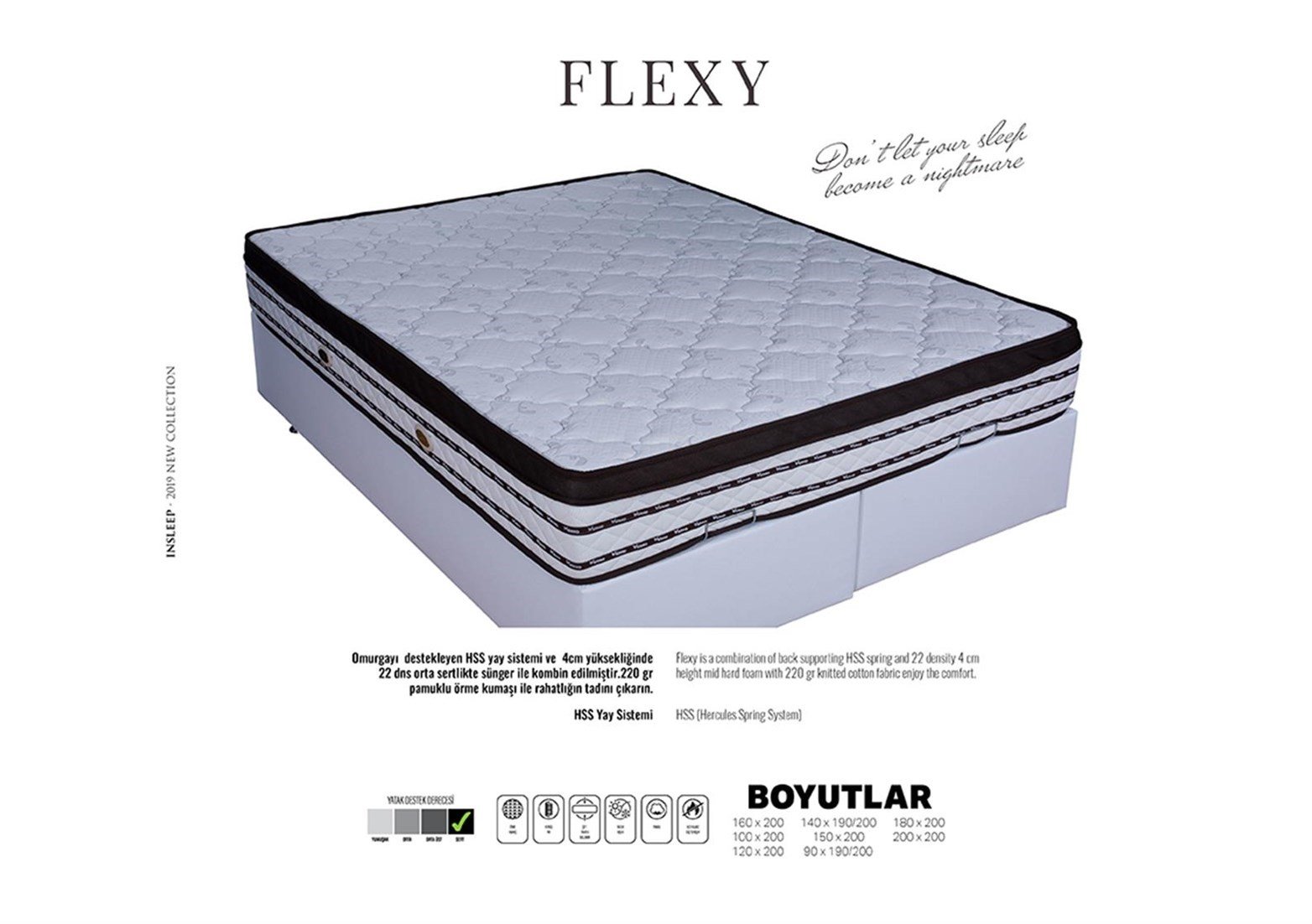 Yatak Malzemesi Omurgayı destekleyen HSS yay sistemi kullanılmıştır. 220 gr pamuklu örme kumaş ve 4 cm yüksekliğinde 22 dns orta sertlikte sünger kullanılmıştır. Sert ve orta sertlikteki yatakta yatmayı sevenler için idealdir. Yatak yazlık ve kışlık olarak çift taraflı kullanılabilir.
